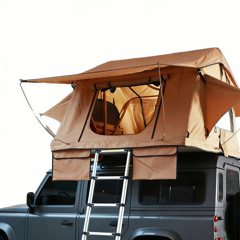 This soft roof top tent utilizes premium waterproof fabrics and a breathable structure to ensure a dry and ventilated environment during car roof tent camping.