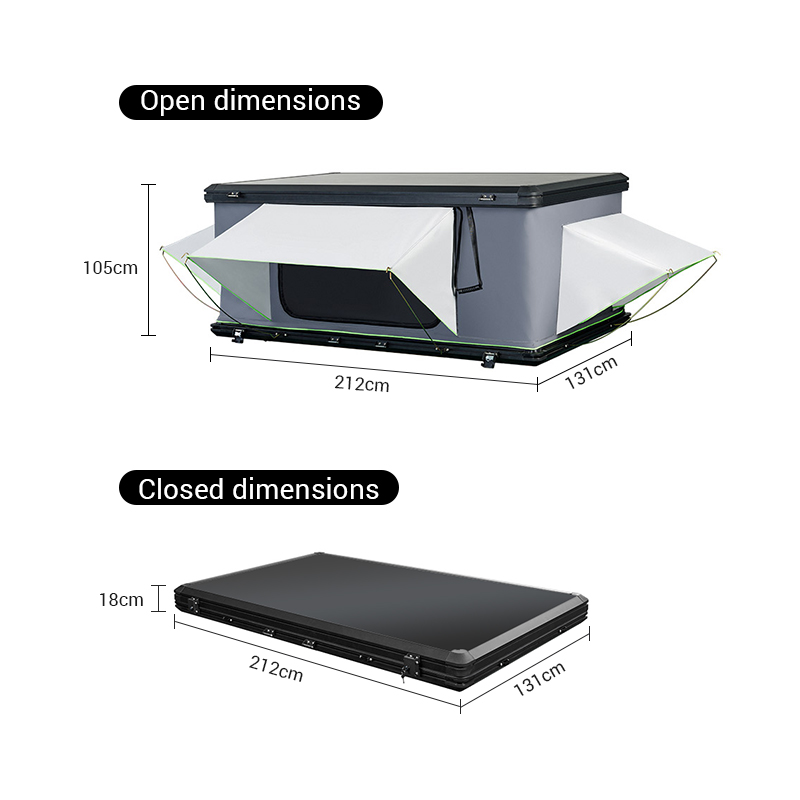 Combined with the hard shell and 3000mm waterproof fabric fabric, it has excellent waterproof and UV-resistant capabilities, ensuring the safety and comfort of outdoor living.